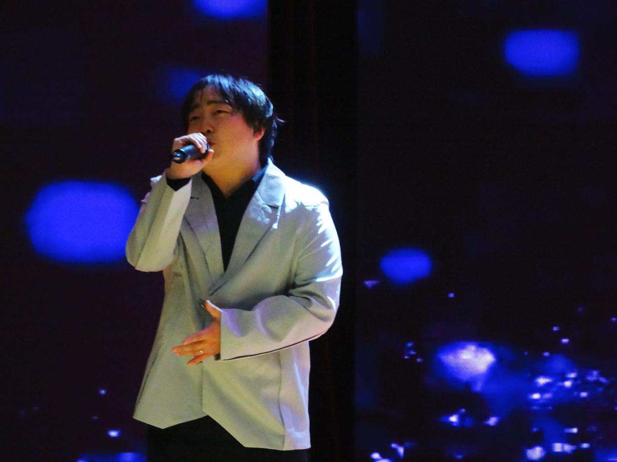 演出以《逆光》开场,激昂的节奏与充满力量的演唱瞬间点燃现场,展现出追光者在逆境中奋勇前行的决心,鼓舞着每一位观众勇敢直面生活挑战;《苏州河》舒缓悠扬的旋律如潺潺流水般流淌,温柔的嗓音诉说着河畔故事,将观众带入静谧而浪漫的氛围,勾起对美好过往的回忆;英文歌曲《Someone Like You》深情款款,演唱者极具感染力的嗓音诠释出爱情的遗憾与释怀,引发情感共鸣;民谣《阿嬷》以质朴的歌词搭配温暖的旋律,勾勒出记忆中阿嬷的慈祥模样,充满浓郁的乡愁,唤起大家对亲人的思念之情;歌曲《命运》磅礴的气势和激昂的旋律如命运的叩击,唱出与命运顽强抗争的不屈精神;轻快俏皮的《莫怕莫怕》以灵动的节奏和活泼的演绎,传递出乐观积极的生活态度,为现场带来阵阵欢笑;《梦的光点》旋律清新明快,歌声中饱含对梦想的憧憬与追求,点燃了少年心中的希望之火;合唱《世界赠予我的》将整场演出推向了高潮,和谐的和声与真挚的情感,表达了对世界的感恩与热爱,让在场的每一位观众感受到了音乐的魅力与温暖。