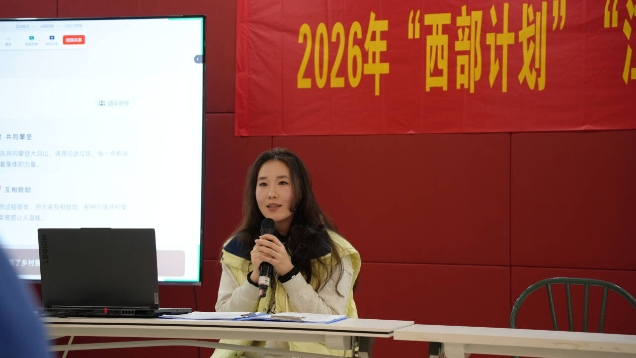 2024年“西部计划”志愿者邹函(现服务于新疆阿勒泰)通过腾讯会议线上连线,结合自身边疆服务经历,从政策保障、岗位实践、材料填报、面试准备及成长收获等方面,为同学们答疑解惑。他表示,西部计划为青年学子提供了服务社会、锤炼自我的广阔平台,唯有脚踏实地、主动奉献,才能在基层实践中增长才干、坚定信念,彰显新时代青年的责任与担当。